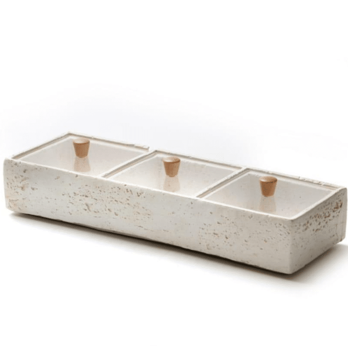 מגש מלבני אלגנטי ומוארך, בעל שלושה תאים נפרדים,