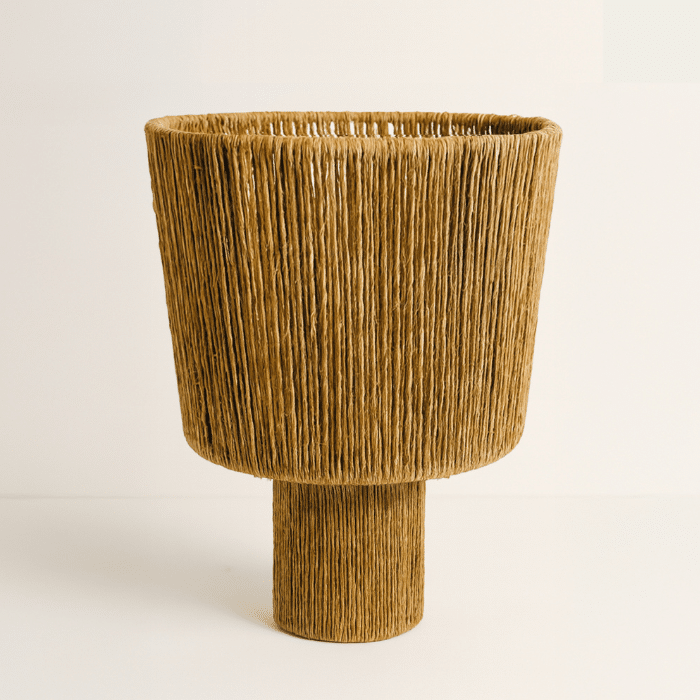 מנורה דקורטיבית עשויה מיוטה , בעיצוב עגול ומרשים שמכניס חמימות ובוהו־שיק לכל חלל.