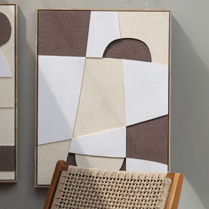 המראה הגיאומטרי מעניק תחושה של תנועה והרמוניה, עם גימור מחוספס וטבעי.