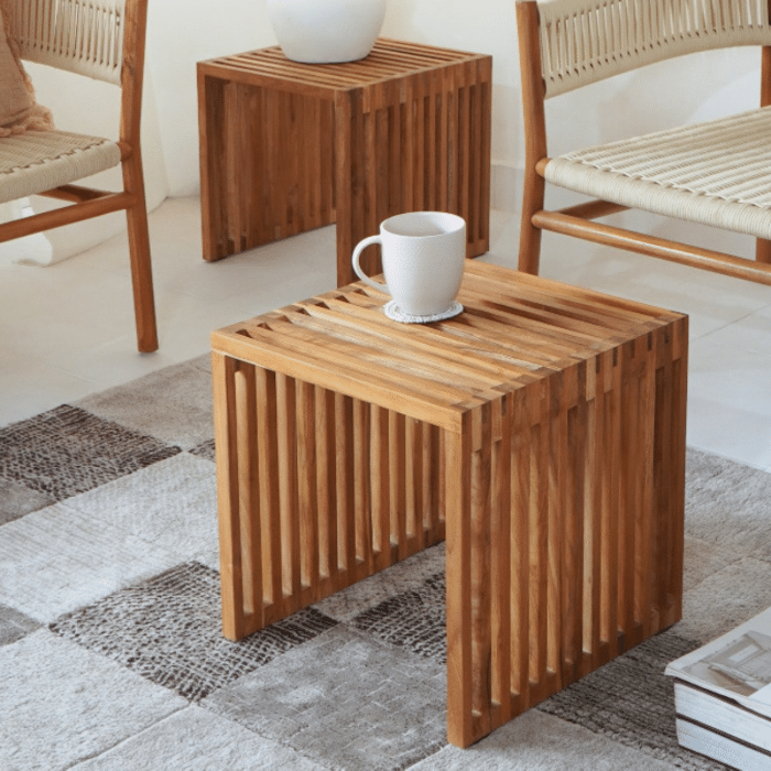 עשוי עץ טיק עם טקסטורה עדינה שמכניסה תחושת רוגע ואותנטיות לחלל.