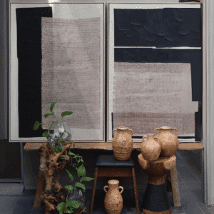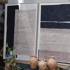 תמונת קיר דקורטיבית בעבודת יד, בעיצוב גיאומטרי נקי ומאוזן.