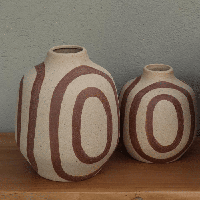שילוב מרגיע בין גוון חול רך לקווים ידניים בצבע אדמה חמה,