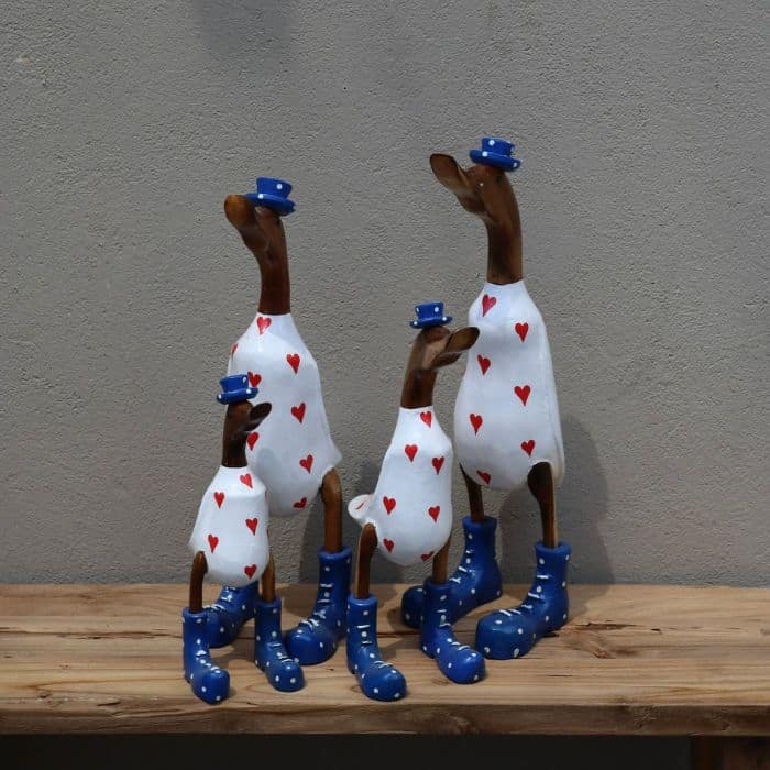 רביעיית ברווזים מעץ, בעיצוב מלא אופי וקסם.