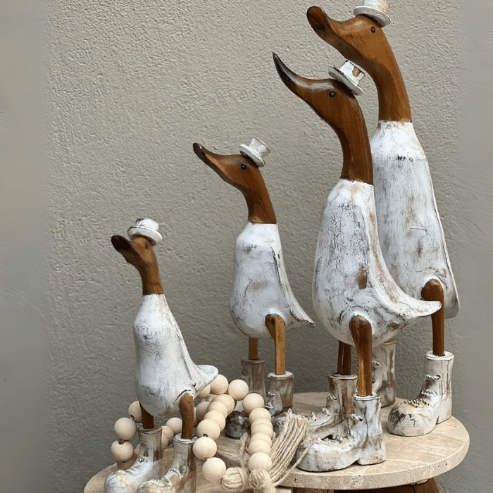 רביעיית ברווזים מעץ, בעיצוב מלא אופי וקסם.