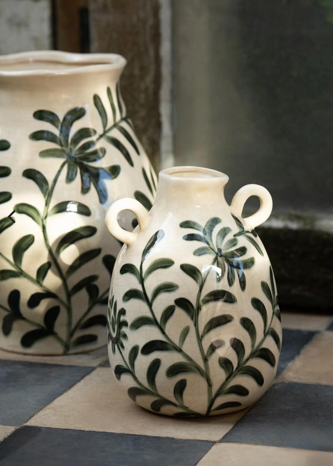 אגרטל קרמיקה בעיצוב אלגנטי עם איורי פרחים עדינים בגוון חמרה חם על רקע בהיר. הציור הזורם והאורגני מעניק לאגרטל מראה טבעי ורך בהשראה ים-תיכונית, המשלב חמימות עם אלגנטיות מינימליסטית.הצורה המעוגלת והנקייה מאפשרת לו להשתלב בקלות בכל חלל – על קונסולה, שולחן סלון או מדף דקורטיבי. מתאים לפרחים טריים, ענפים טבעיים או כפריט נוי בפני עצמו שמוסיף עומק וחמימות לחלל.
