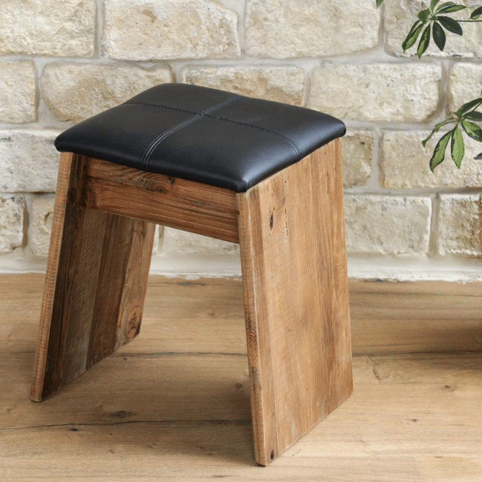 כיסא משלב מראה טבעי וחמים עם נגיעה אלגנטית של ריפוד עור בצבע שחור.